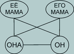 В большинстве случаев этот процесс усложнен так называемыми треугольниками: она - он и его или ее мать (родители, сестра, брат и т.д.). Чем больше действующих лиц - тем больше треугольников: